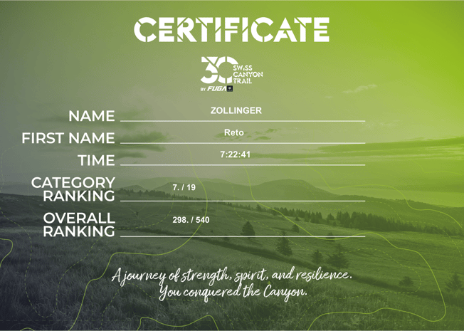 Der Swiss Canyon Trail ist ein herausforderndes Rennen, das die Teilnehmer durch die atemberaubende Landschaft des Jura führte. Der Trail bot technische und anspruchsvolle Strecken, die bei Dauerregen stattfanden und den Wettkampfteilnehmenden spektakuläre Panoramablicke auf den berühmten Creux du Van, den bekanntesten Canyon der Schweiz, verwehrten.